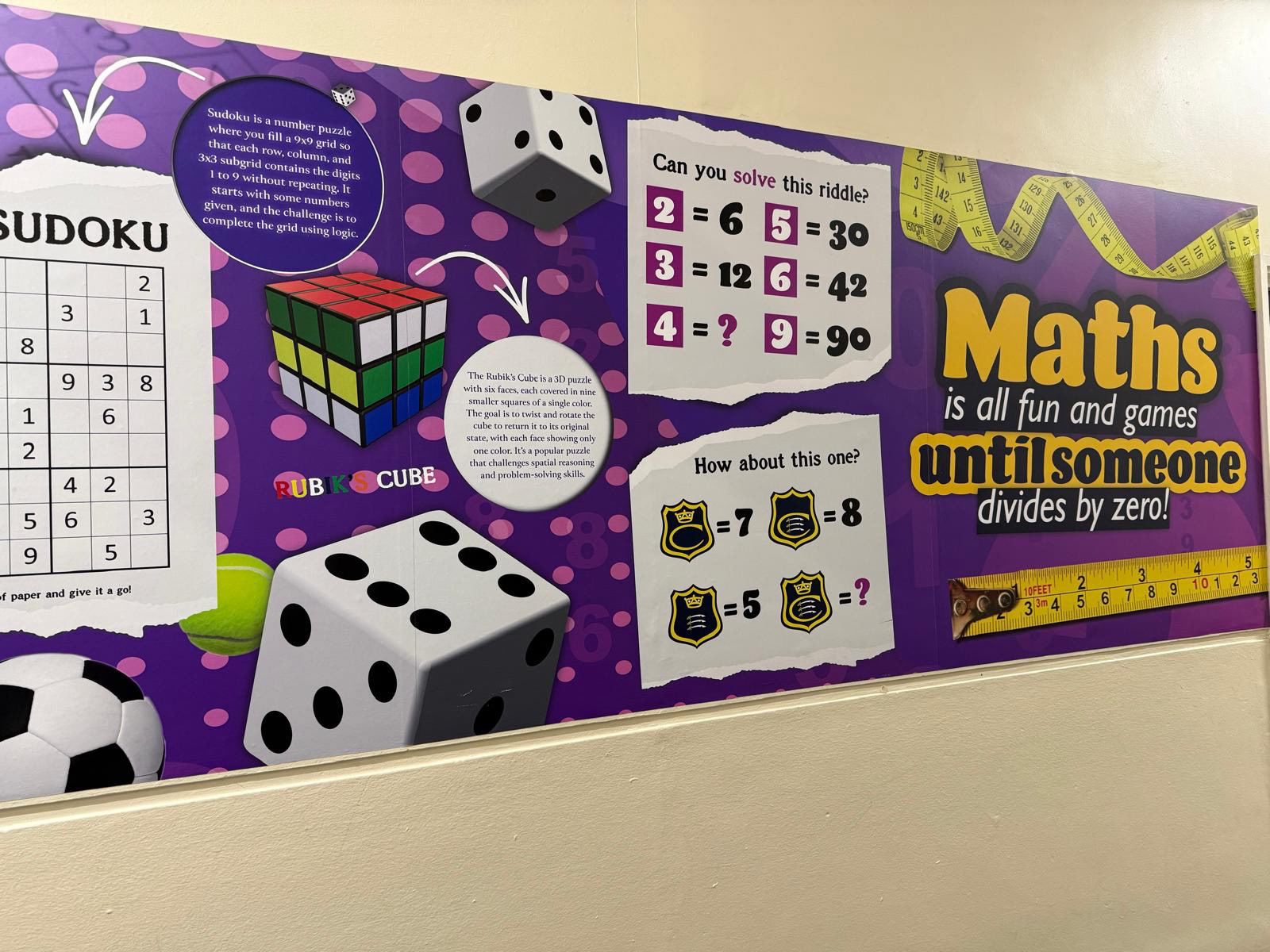 Highlights include mathematics-themed stair graphics with formulas, logic games and famous figures, science walls exploring the solar system and core concepts, and biodiversity designs promoting sustainability. I also created large-scale geography and history pieces, from local heritage timelines to global maps. All work was shaped in close collaboration with teaching staff to ensure educational impact.