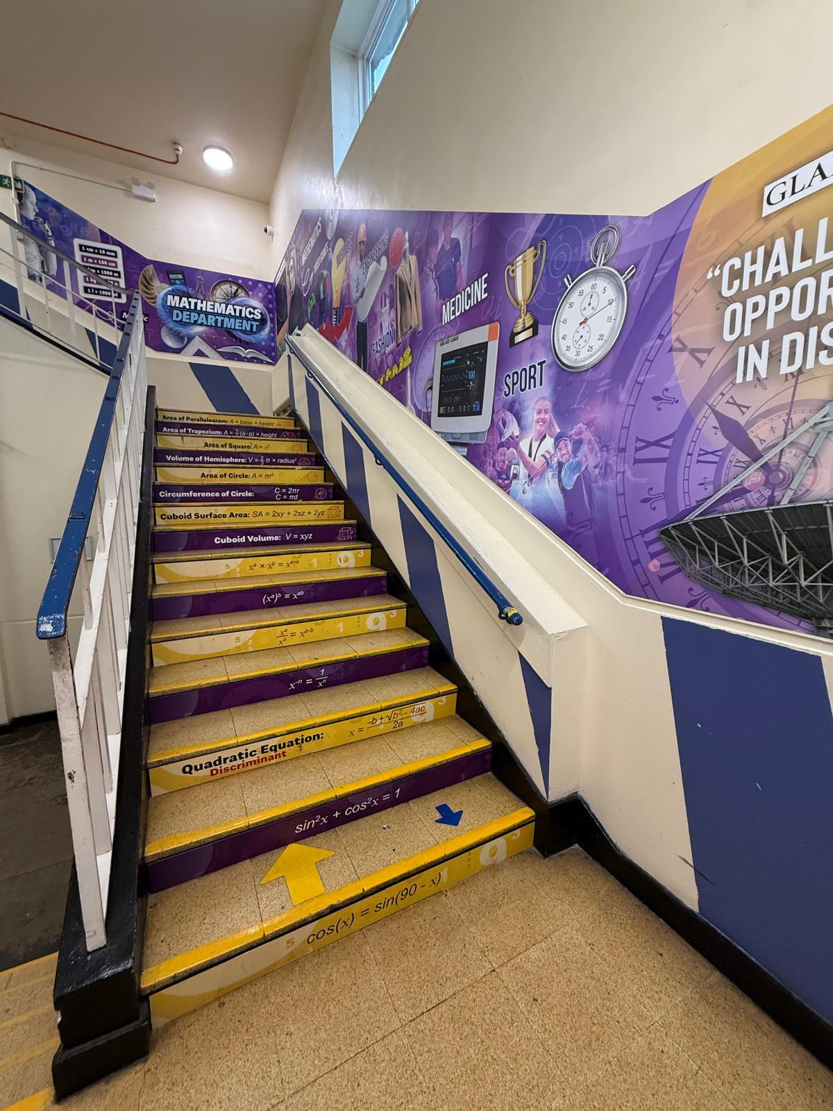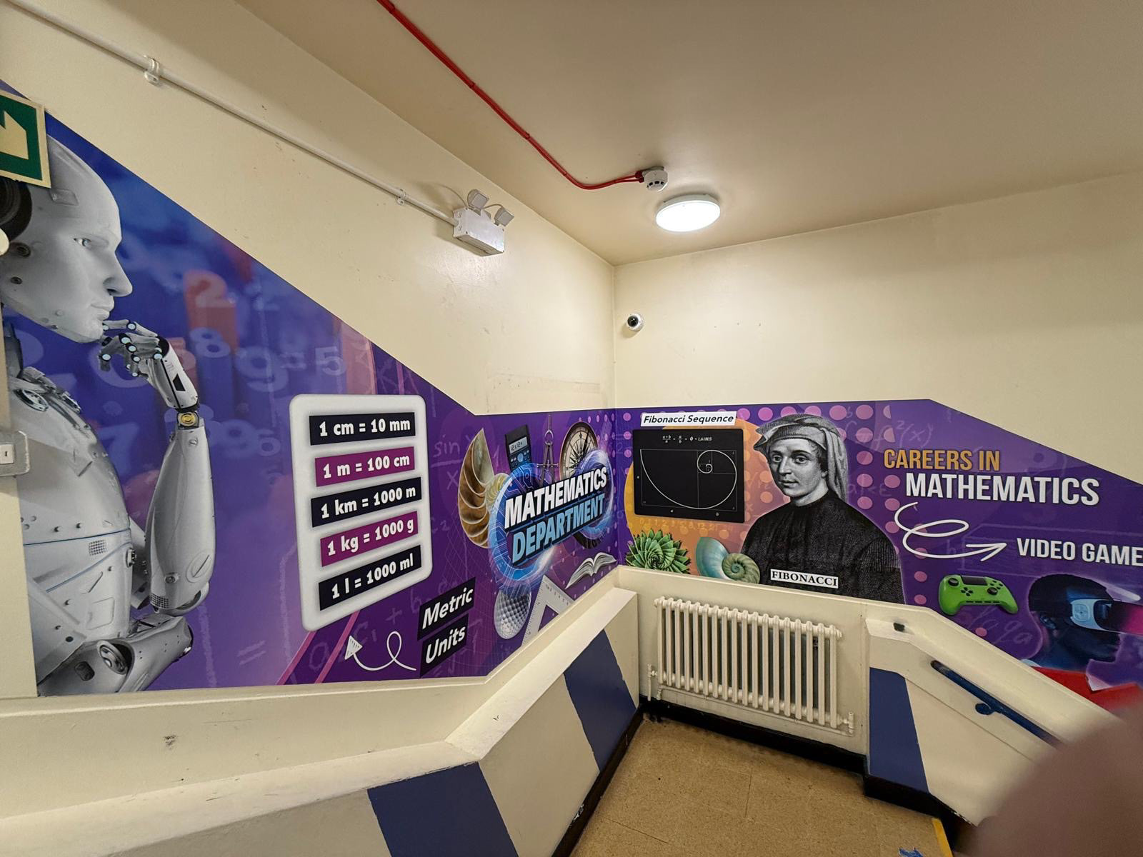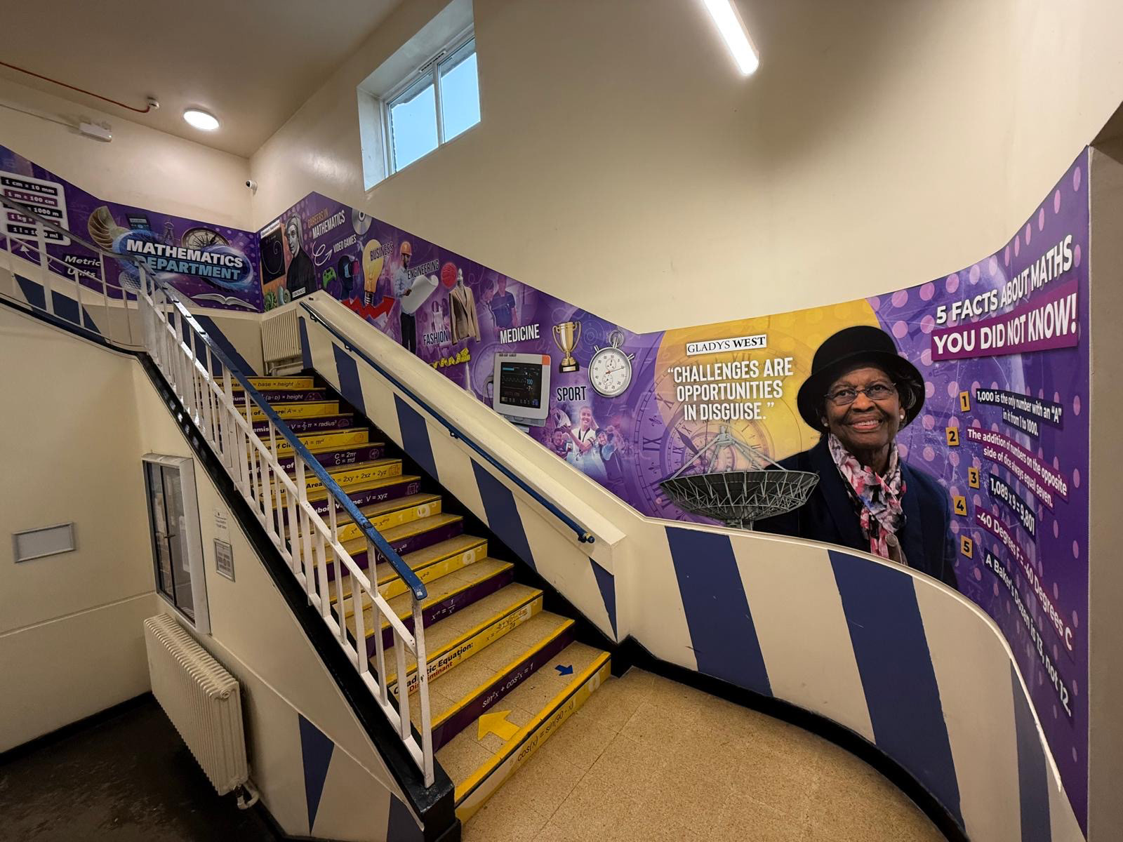 At Claremont High School, I developed a series of subject-based graphics designed to transform corridors and staircases into immersive learning environments. Each installation was tailored to support the curriculum and engage students through visual storytelling.