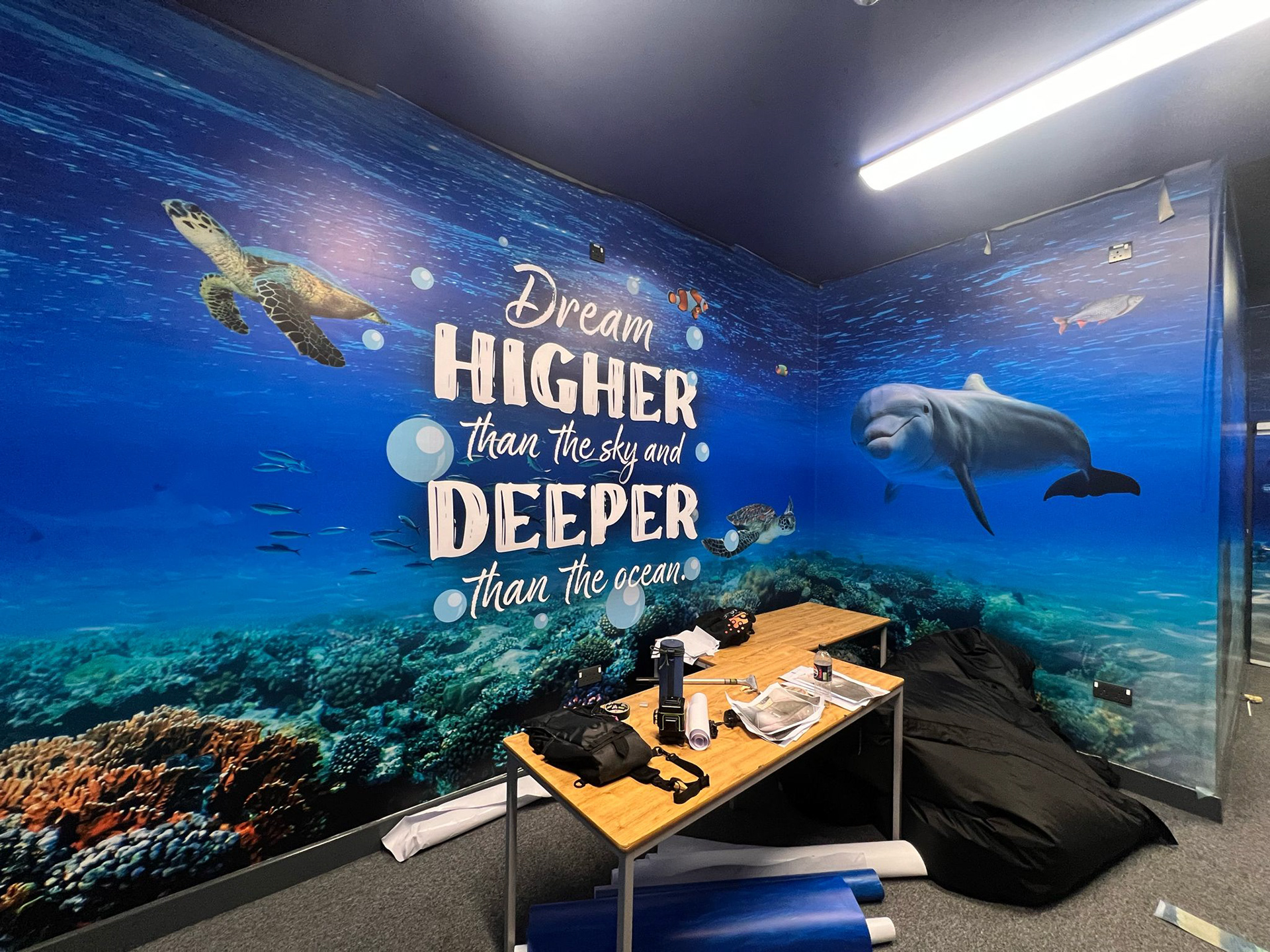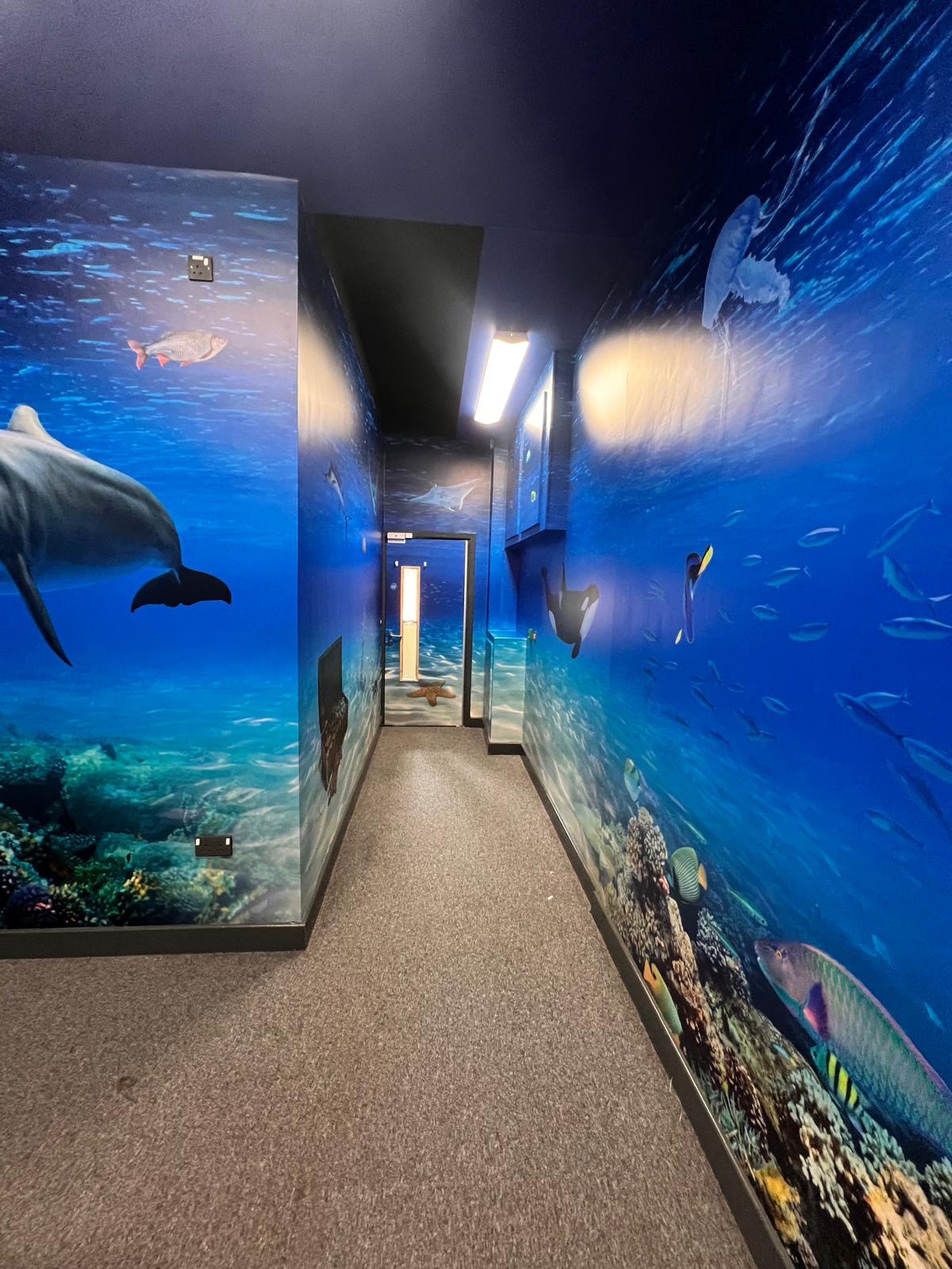 Projects included immersive underwater and space-themed mindfulness rooms, bold house banners, and vibrant graphics for the library, sports areas, cafeteria and school signage. I also developed branding for the school’s outdoor sweet shop, Shack Snack. All designs were produced at 25% scale in Adobe InDesign for accuracy and ease of production.