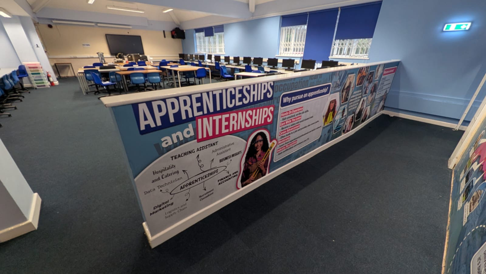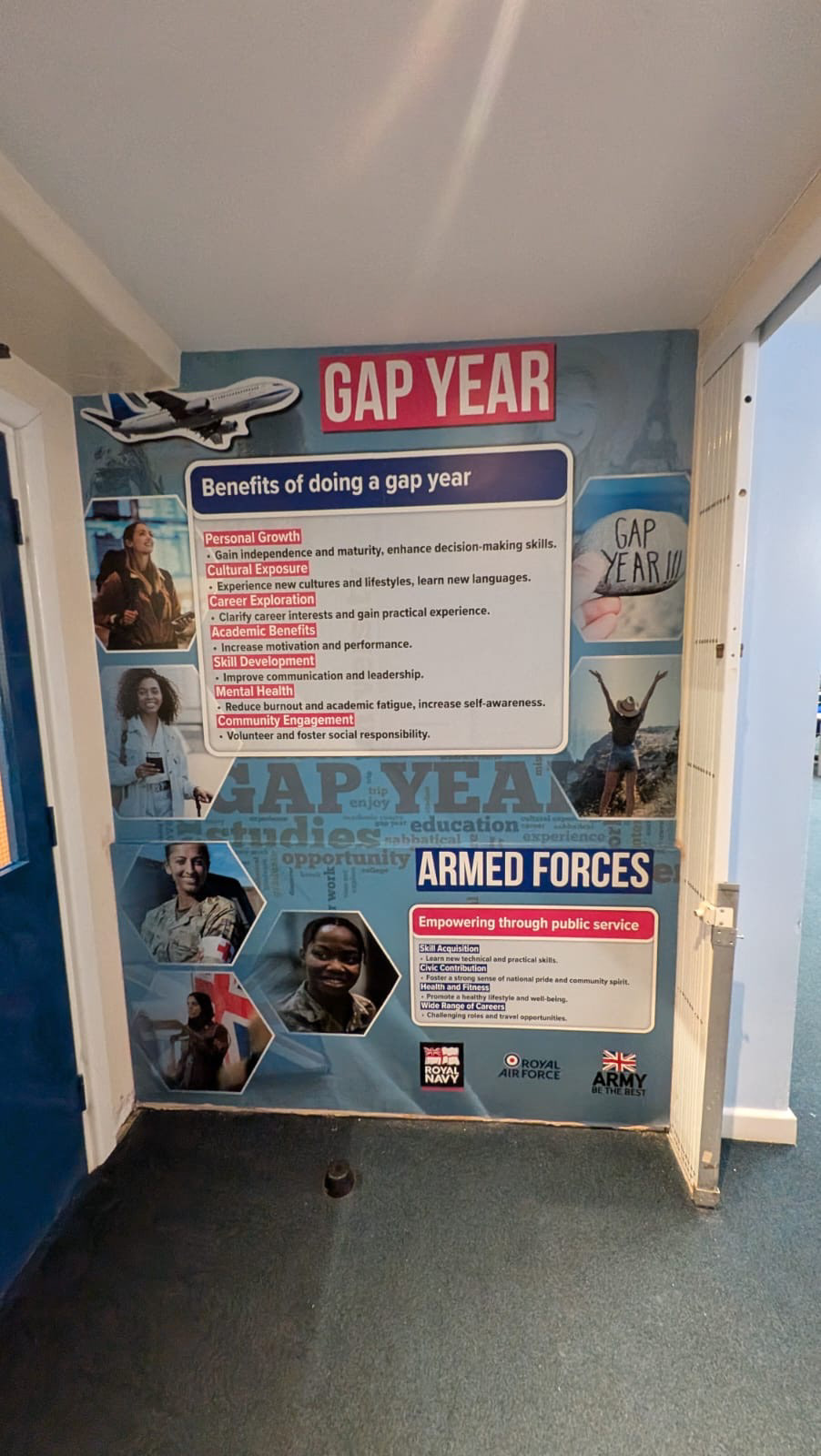 I also created a series of careers walls to help students explore their options after school—covering uni, apprenticeships and different job paths. This meant digging into loads of info and making sure everything was clear, inspiring and easy to follow. Each design was made to feel friendly and engaging, with visuals that reflect the school’s character and speak directly to the students.